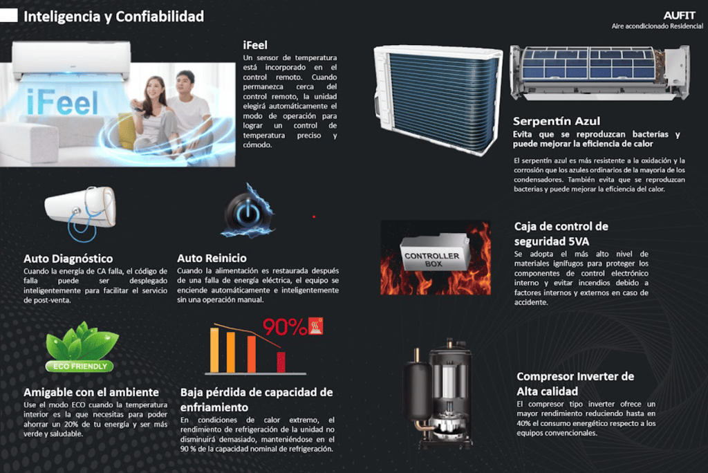Minisplit WiFi inverter / SEER 17 / 12,000 BTUs ( 1 TON ) / R32 / Frío y Calor / 220 Vca / Filtro de Salud.